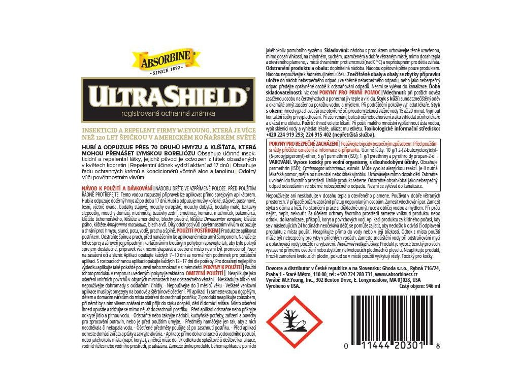 Absorbine UltraShield EX Insecticid & Repelent, láhev s rozprašovačem 946ml