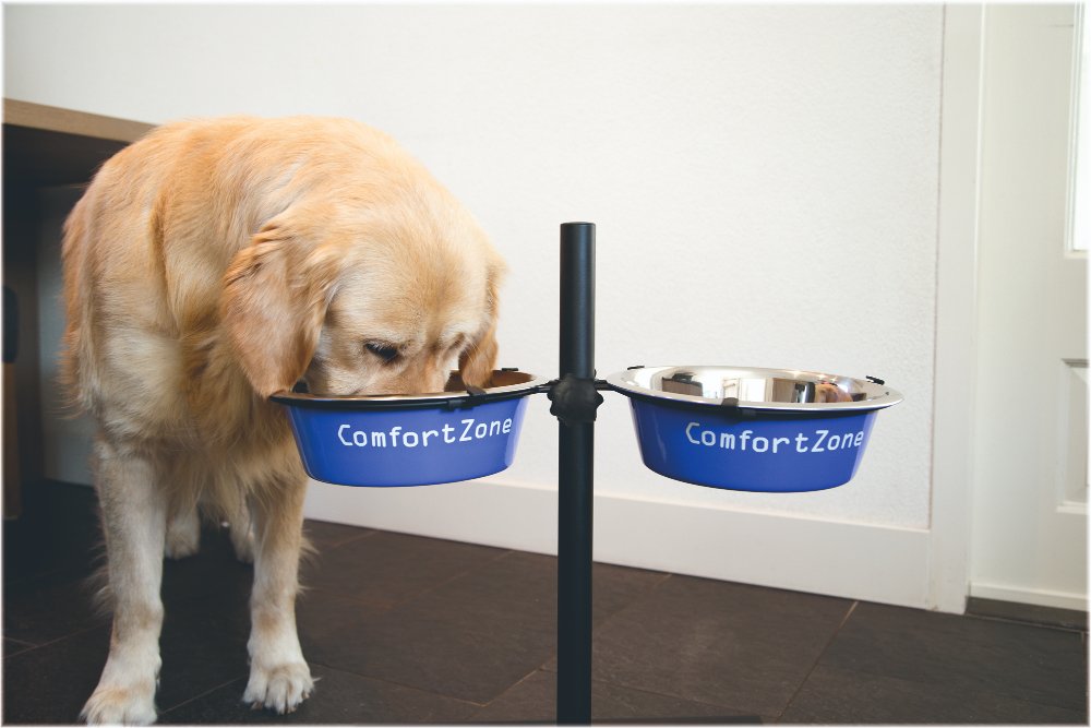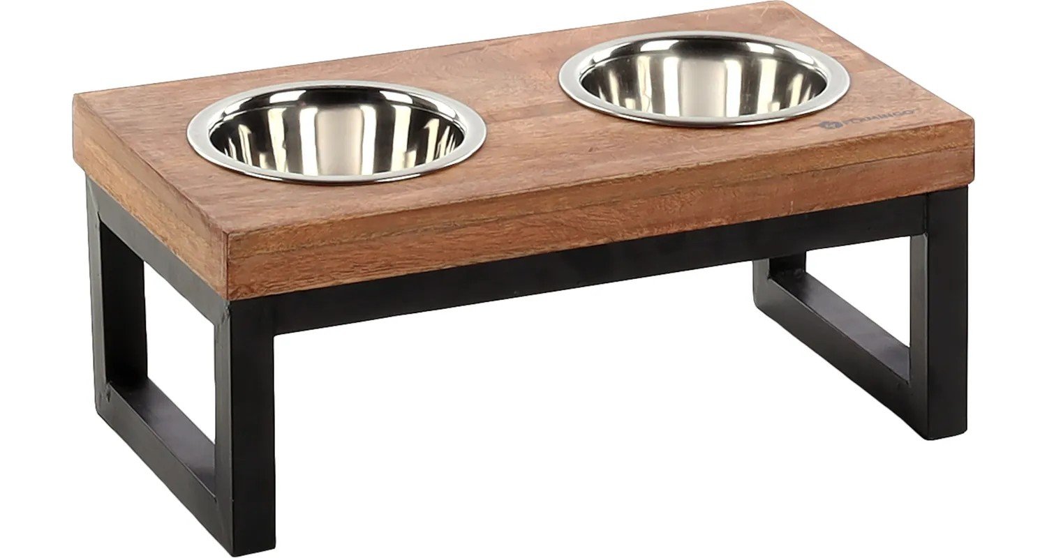 Stojan na misky pro větší a velké psy je výškově nastavitelný, takže si můžete vybrat tu správnou pozici pro Vašeho nejlepšího kamaráda. Pes se nemusí ohýbat, žere přirozeně a má k ispozici krmivo (granule, vlhké krmivo) a dostatek vody. Zabrání i přístupu škůdců po zemi a kontaminaci. Stojan má navíc na spodní straně gumové protiskluzové krytky, které zabraňují klouzání a chrání Vaši podlahu před poškrábáním. Misky z nerezové oceli lze mýt v myčce. Stylové stojan se 2 nerezovými miskami jednou na krmivo a druhou na vodu a mohou být v moderní kombinaci kov, nerez kov nebo třeba mangové dřevo.