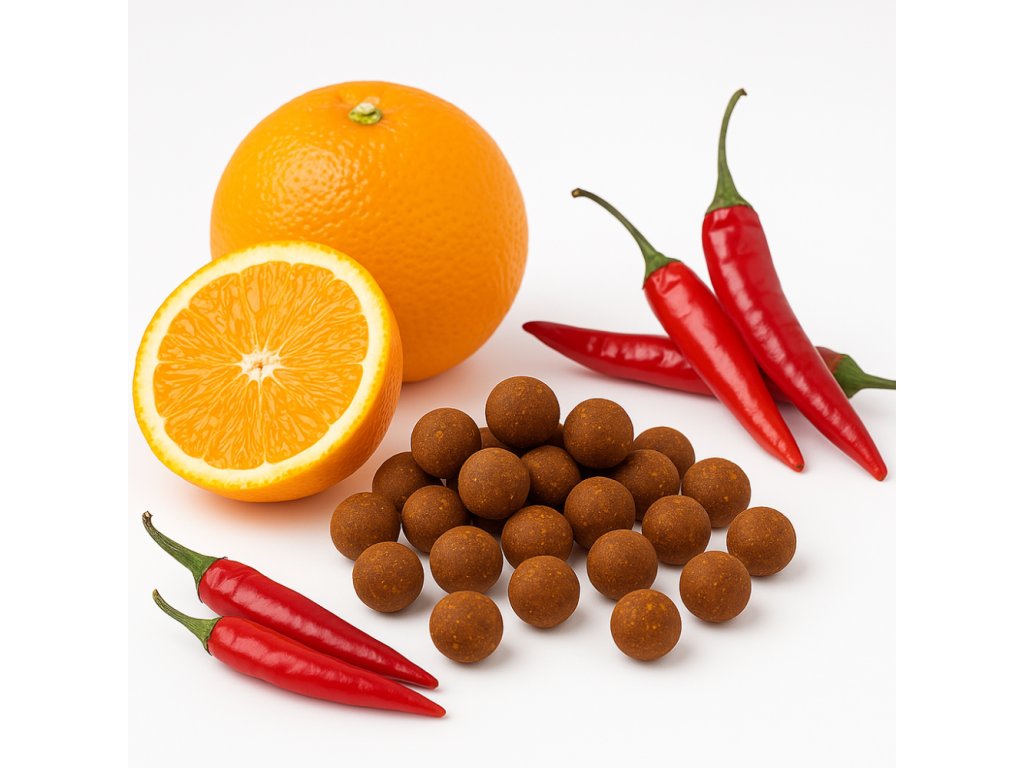 Boilies Pomeranč a Chilli – Ø 16 mm, 10 kg
