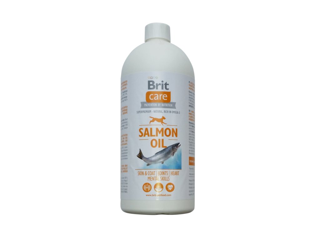 Brit Care lososový olej je 100% čistý olej z lososa, bohatý na omega-3 a omega-6 mastné kyseliny (EPA a DHA), které přispívají ke zdravé kůži, lesklé srsti, silné imunitě, zdravému srdci a správné mozkové činnosti. Vhodný pro psy všech plemen, věkových kategorií i výživových režimů (včetně BARF).