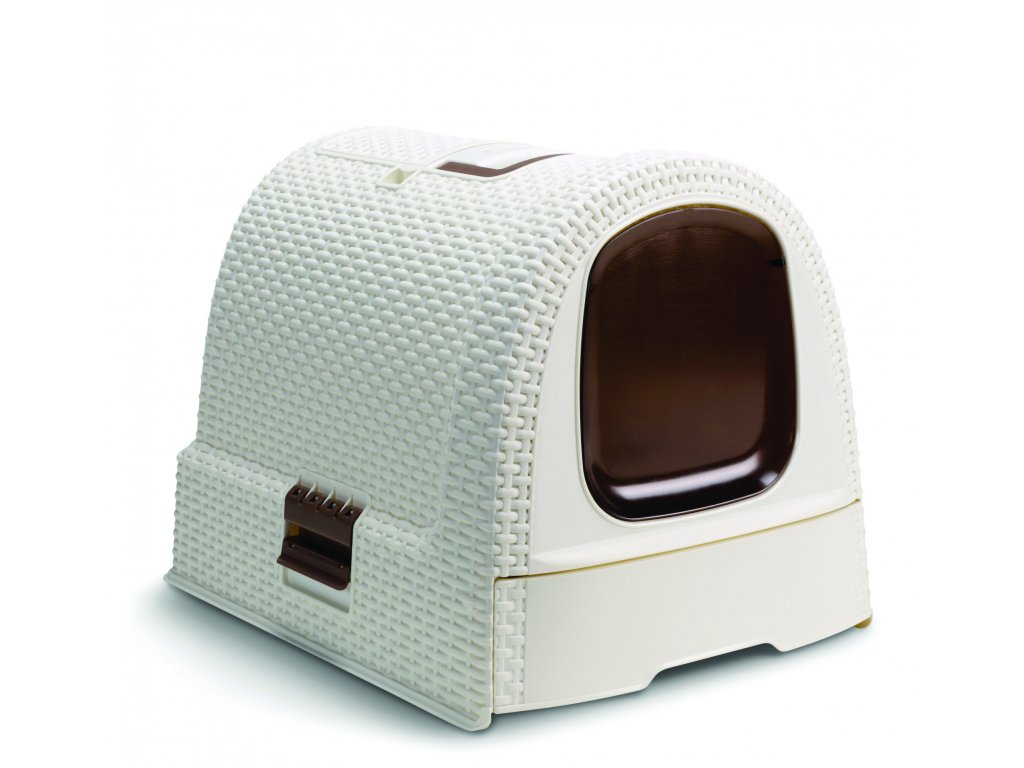 Stylová a plně uzavřená toaleta pro kočky ve vzhledu ratanu, která spojuje elegantní design s vysokou funkčností. Díky uzavřené konstrukci se skvěle hodí do moderní domácnosti – vypadá jako stylový doplněk, nikoli jako běžné WC.