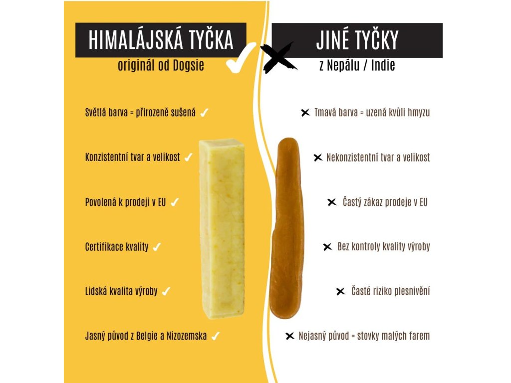 Dopřejte svému psovi zdravé mlsání s Himalájskou tyčkou Dogsie, inspirovanou tradiční himalájskou recepturou. Tento tvrdý žvýkací pamlsek z kvalitního belgického mléka je přirozeně sušený po dobu 3 měsíců, díky čemuž si zachovává výjimečnou tvrdost, chuť a výživové hodnoty.