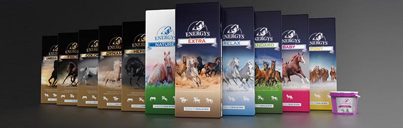 Energys Horse nabízí kvalitní krmiva pro sportovní, pracovní i rekreační koně. Granule, müsli a přírodní extrudy od společnosti De Heus podporují energii, kondici, trávení i regeneraci koní všech kategorií. Mezinárodní společnost vyrábějící i u nás v ČR v Běstovicích s využitím poznatků z celého světa. Krmivo pro koně granulované, extrudované a Müsli v originálním pytlovaném balení. Řada Energys Base - Relax, Hobby, Extra, Pony, Baby. Energys z řady Premium - Müsli pro koně Coldmix, Fiber, Herbic, Dynamix, Omega gold. Řada Energys Natural doplňkové krmivo pro koně Vojtěškové granule, Cukrovarské řízky - úsušky, Omega gold extrudovaný len, Sladový květ, Cornflakes vločkovaná kukuřice.