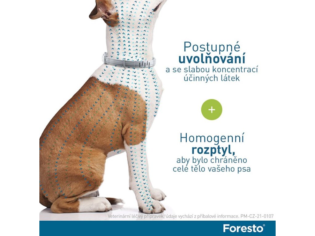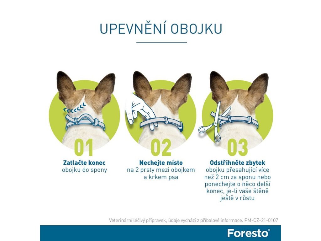 Pro psy o hmotnosti nad 8 kg použijte Foresto obojek o délce 70 cm.