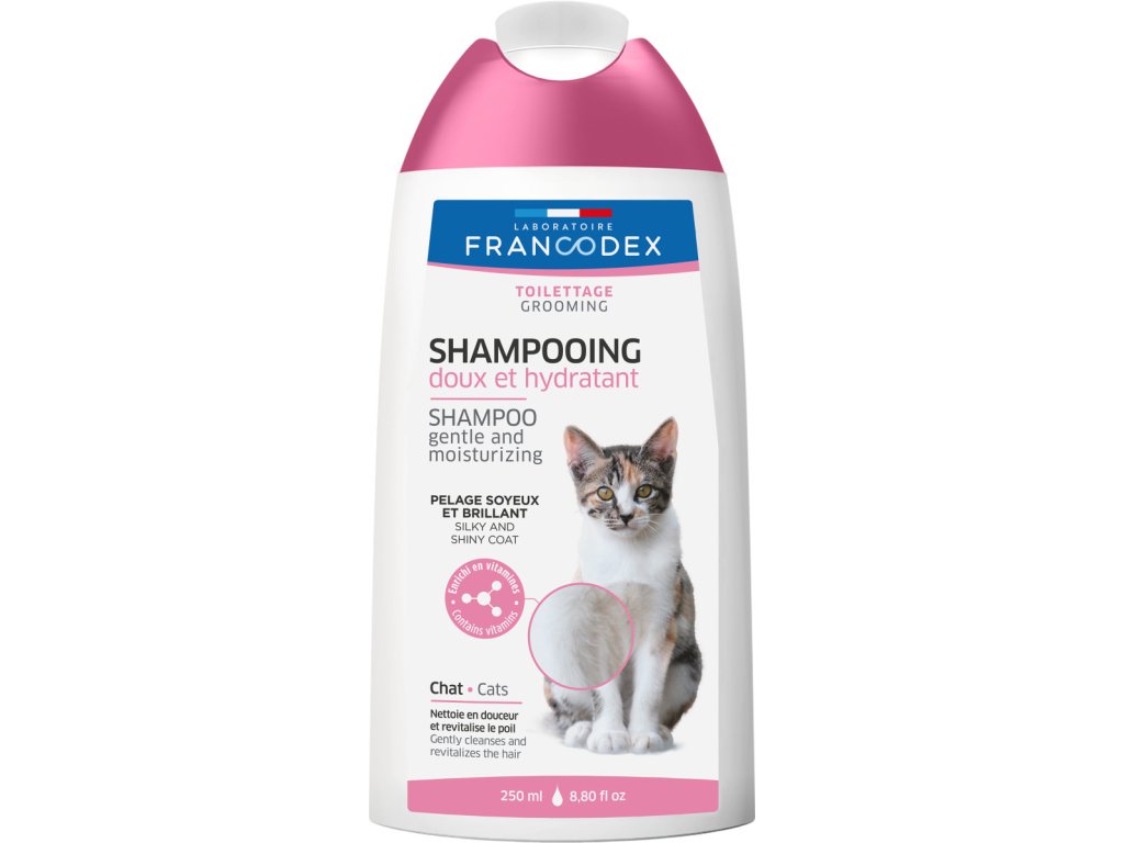 Tento šetrný šampon z francouzské řady Francodex Santé Animale kombinuje neutrální pH, vitaminový komplex a složky proti zápachu. Hydratuje svrchní vrstvu pokožky, dodává srsti objem a zanechává ji hebkou a lesklou. Vhodný pro citlivé kočky a pravidelné používání.