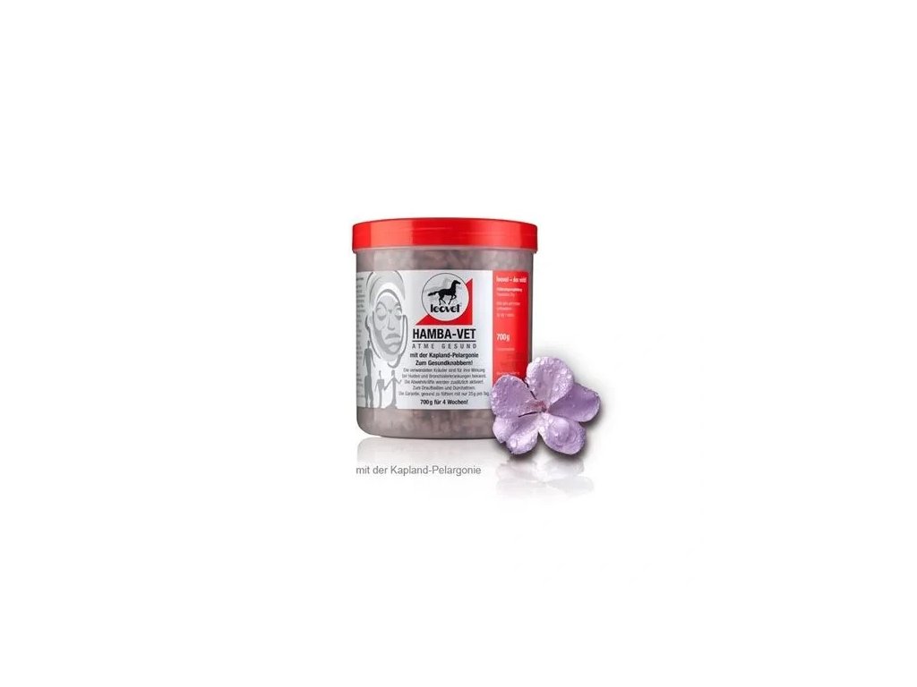 Hamba-Vet je krmný doplněk pro koně určený k posílení imunitního a dýchacího systému. Obsahuje Cape Pelargonium (Pelargonium sidoides), fialově kvetoucí druh pelargónie používaný při respiračních obtížích, a je obohacen o pečlivě vybrané byliny, které podporují obranyschopnost organismu a zdraví průdušek.