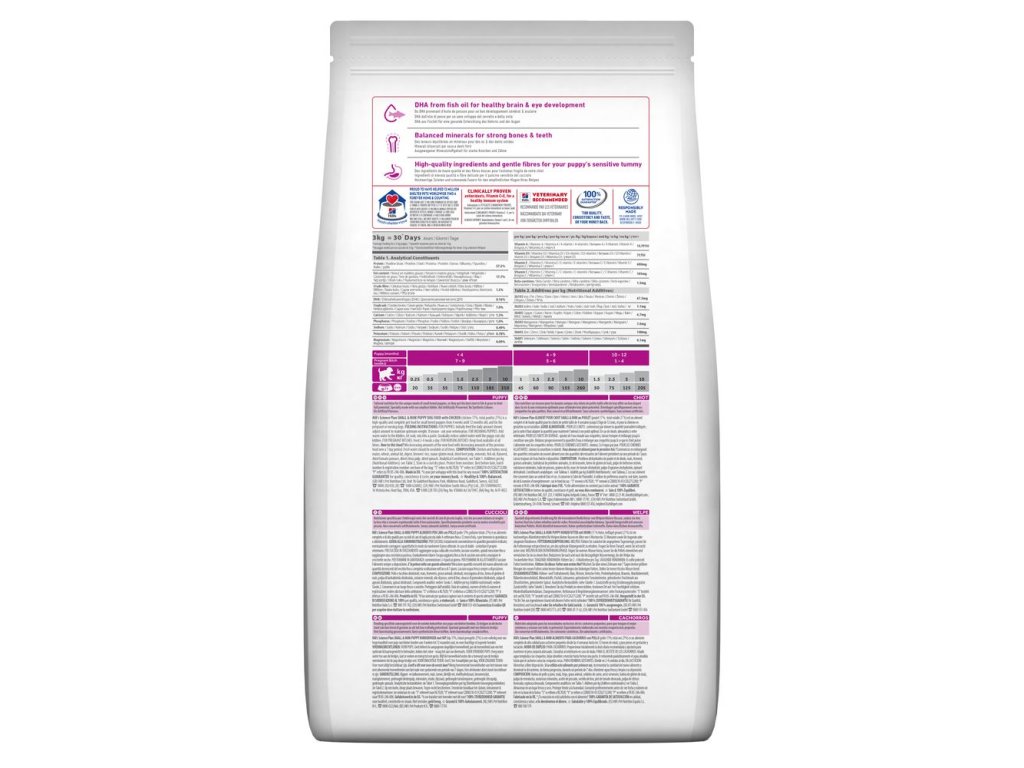 Vysoký obsah DHA, bílkovin a antioxidantů zajišťuje štěňatům malých plemen optimální růst, zdravý vývoj mozku, silnou imunitu a perfektní kondici v každé fázi vývoje.
