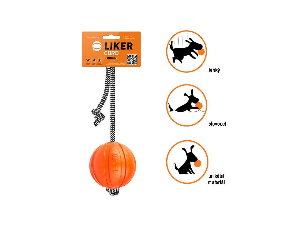 LIKER Cord je míček s pevným provazem, který umožňuje daleké a přesné hody i zábavné přetahování. LIKER není jen obyčejný míček – je to promyšlená hračka pro psy, která kombinuje nejlepší vlastnosti různých materiálů. Je lehký, měkký a pružný, výborně létá, plave na vodě, snadno se čistí a je zdravotně nezávadný. Díky výrazné oranžové barvě je perfektně viditelný v trávě, na sněhu i ve vodě.