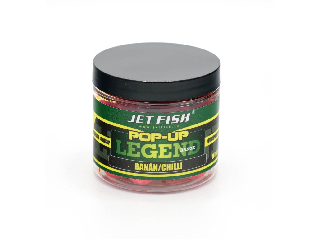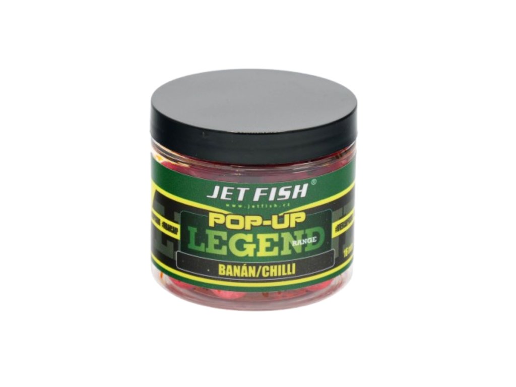 Jet Fish Legend Range Pop-Up Banán Chilli 16 mm – Plovoucí boilies s exotickou příchutí
