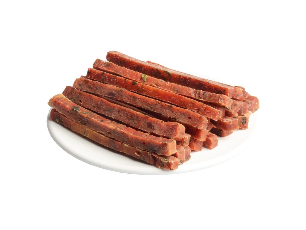 Lahodné masové plátky z kachního masa. Vysoká kvalita použitých surovin zaručuje výraznou chuť a vůni. 100 % přírodní, bez lepku. Sáček má praktické uzavírání, pamlsky tak...