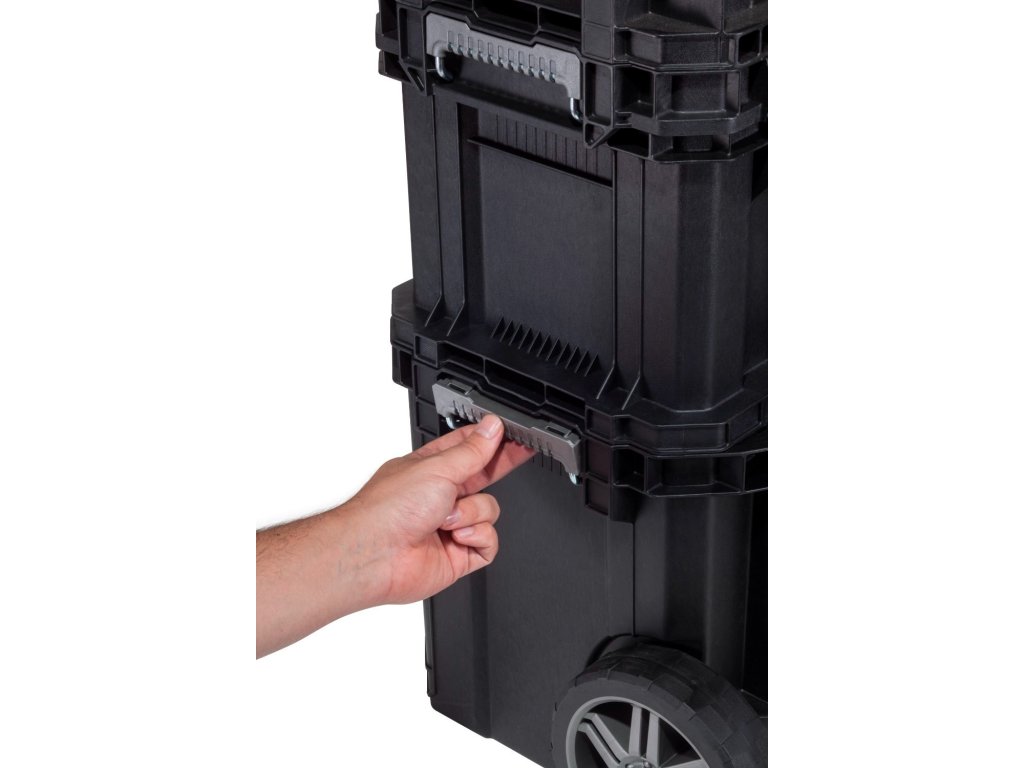 Každý úspěšný kutil zná tajemství udržování vašich nástrojů přístupných a ve skvělé kondici. Connect Toolbox splňuje vše, co byste od univerzálního boxu na nářadí vyžadovali. Udržujte své elektrické nářadí a velké ruční nářadí bezpečně uložené v prostorné hlavní přihrádce a malé ruční nářadí mějte přehledně uspořádané ve vyjímatelné přihrádce na nářadí. Je kompatibilní s dalšími produkty Connect.