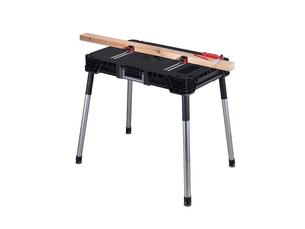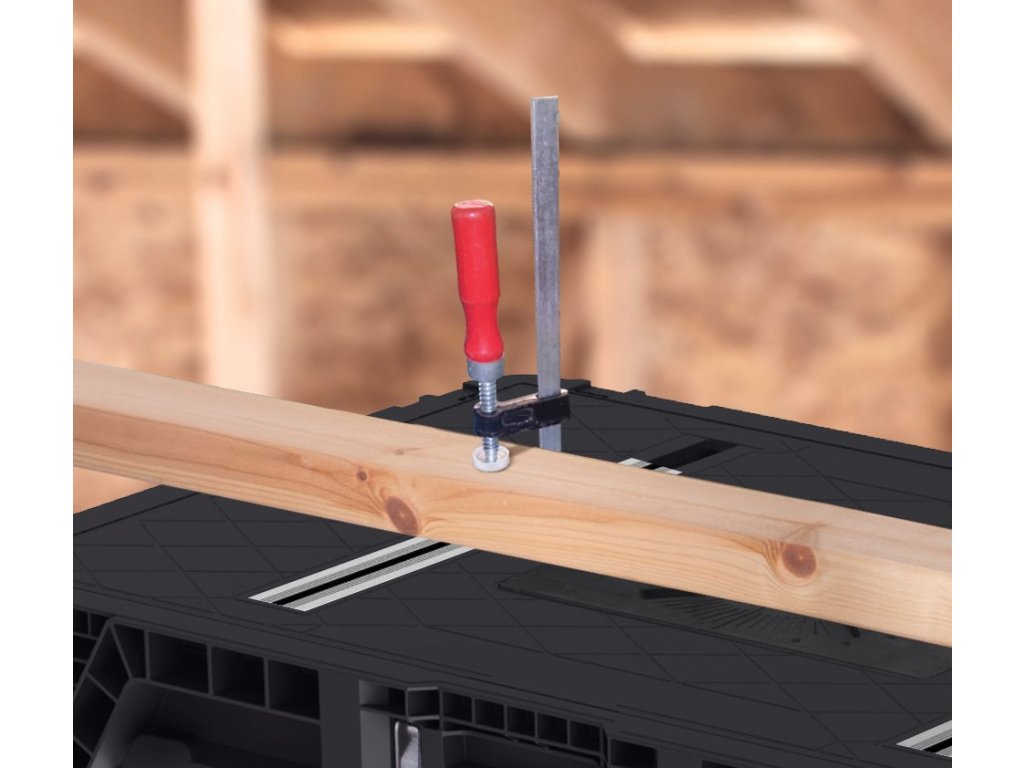 Přenosná pracovní lavice Jobmade je skvělou volbou pro profesionály a kutily, kteří vyžadují praktický pracovní stůl, který zvládne téměř cokoli. Stůl je vyroben s nosností 450kg a integrovanými univerzálními kolejnicemi ve tvaru T a lze jej použít k provádění různých úkolů. Součástí jsou upínací svorky X2 a vyjímatelný organizér příslušenství. Díky držadlu a lehké konstrukci můžete tento stůl snadno vzít na jakékoli pracoviště nebo jej snadno přesunout z garáže do zahrady. Součástí nohou jsou vestavěné stabilizátory, pracovní lavici můžete používat i na nerovném povrchu a užívat si zcela rovnou pracovní plochu.