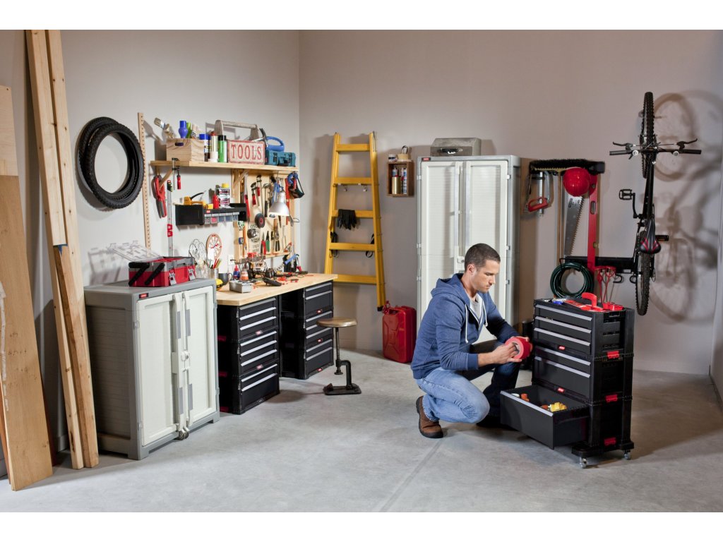Prostorný a praktický box na nářadí na kolečkách, určený i pro nejnáročnější uživatele.