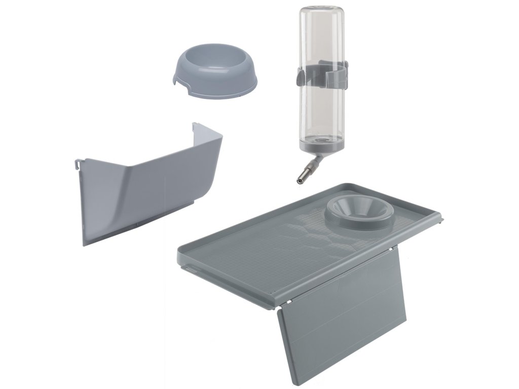 Kompletní výbava součástí – krmný žlab, miska, napáječka a domeček k odpočinku