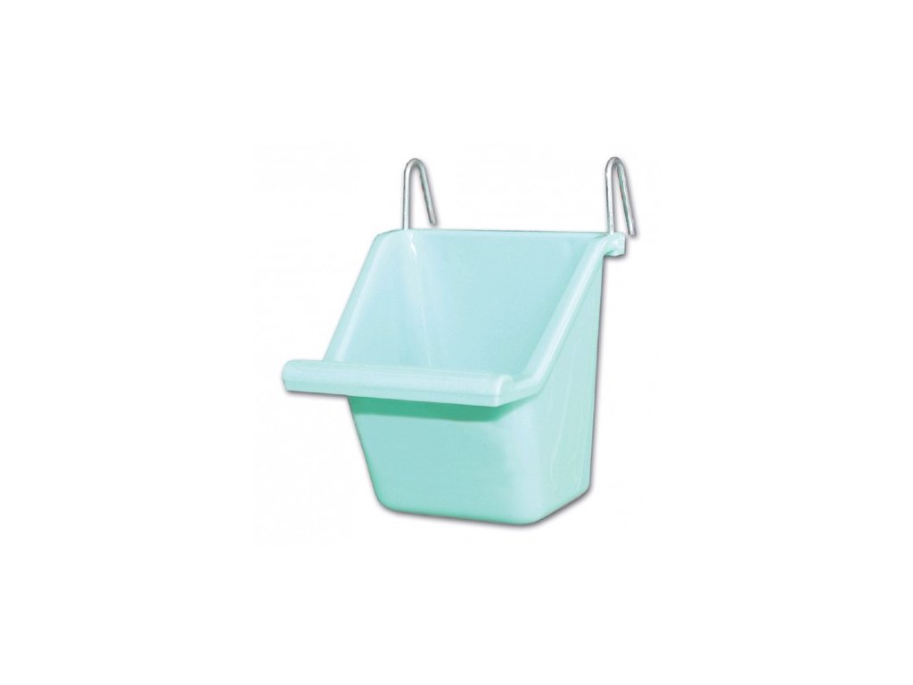 Plastové krmítko pro exoty na zrní, ovoce a další. K zavěšení do klece pomocí dvou kovových háčků.