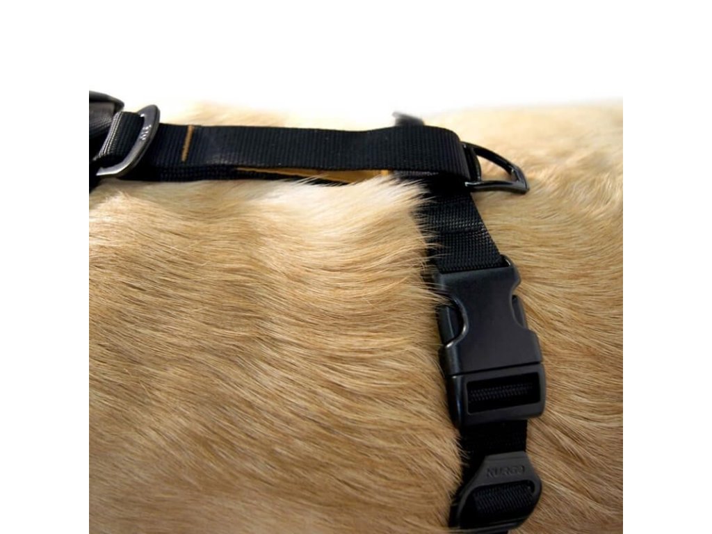 Velkoryse polstrovaný hrudní díl pomáhá rozptylovat kinetickou energii a snižuje zatížení průdušnice i hrudní kosti. Díky dvěma úchytným bodům pro vodítko a pěti nastavovacím bodům lze postroj přesně přizpůsobit různým typům postavy psa.