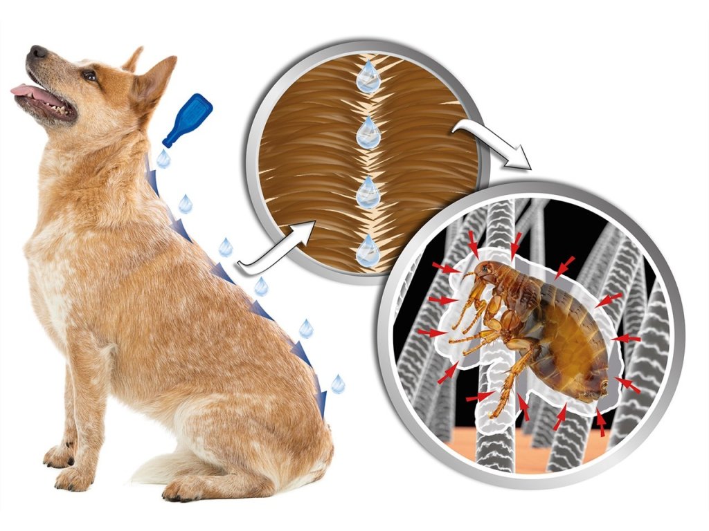 Účinkuje na blechy, klíšťata, komáry, roztoče, vši a všenky