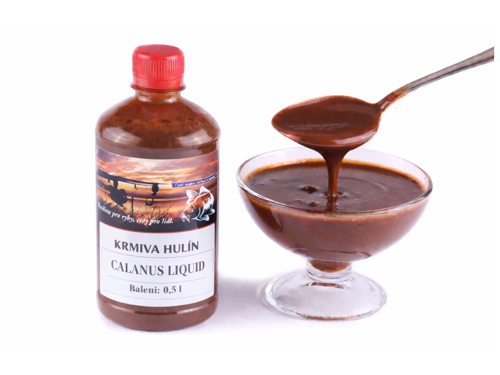 Calanus liquid, hydrolyzované rybí proteiny a další vodorozpustné složky určené pro zvýšení atraktivity návnad a nástrah při sportovním rybolovu.