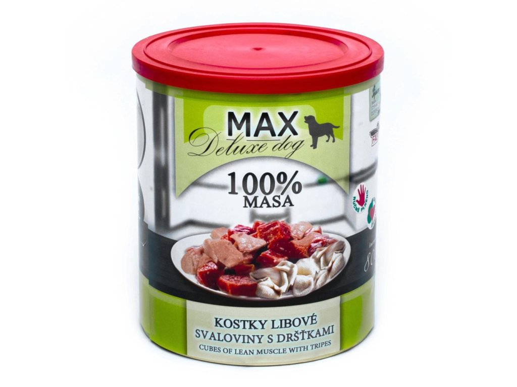 MAX Deluxe Dog kostky libové svaloviny s dršťkami, konzerva 800 g