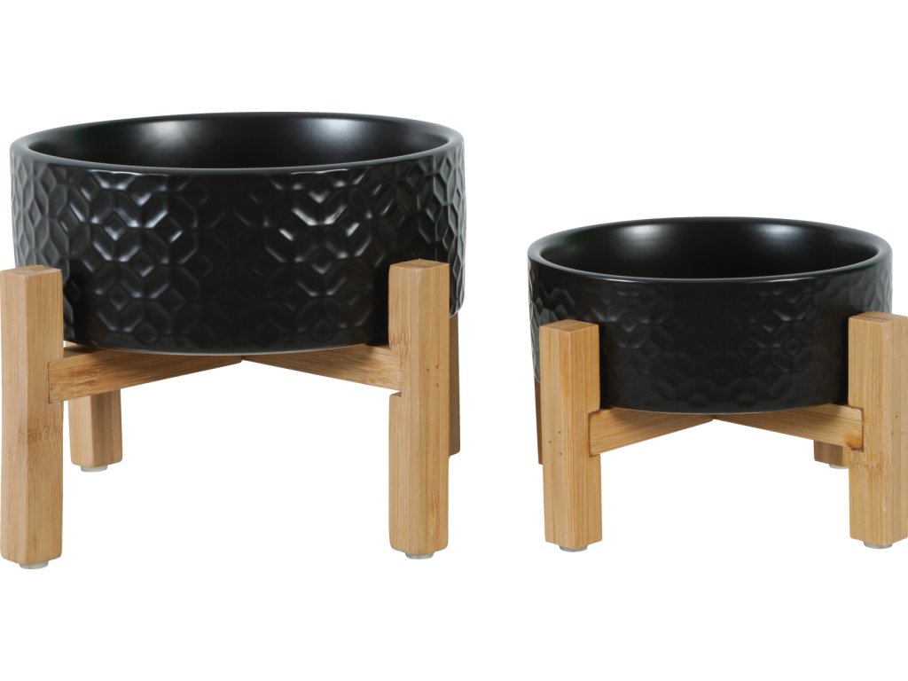 🐾 Keramická miska KERAMO SOLO 700 ml – černá na bambusové podnoži
