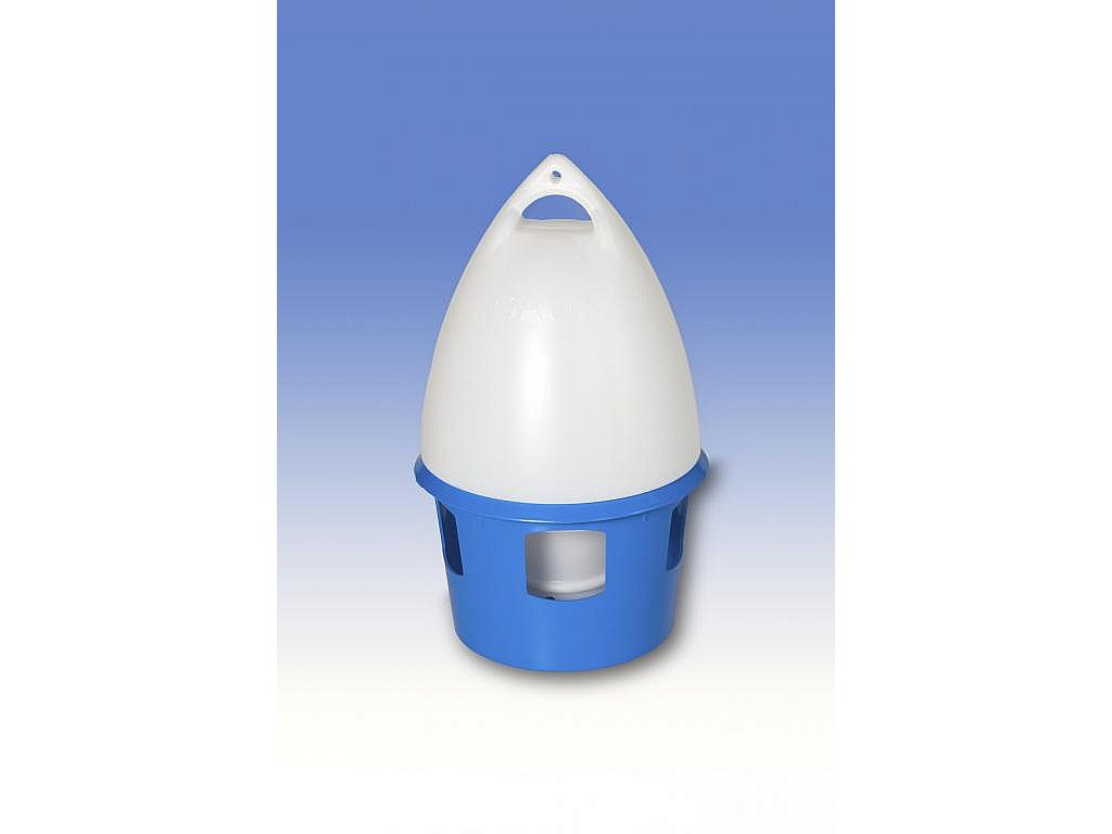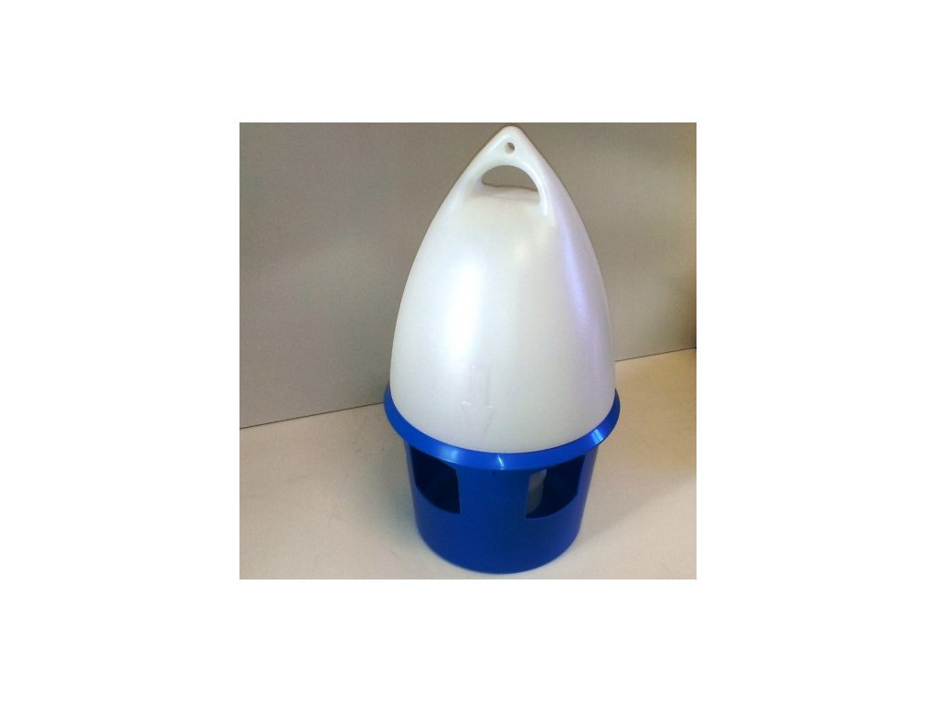 Velmi pevná plastová nádoba o objemu 8 litrů, kterou lze využít jako napáječku i krmítko pro holuby. Díky pevnému uchu se snadno přenáší a zavěšuje. Šikmé (kuželové) dno zajišťuje, že se krmivo přirozeně usýpá a je dobře dostupné.