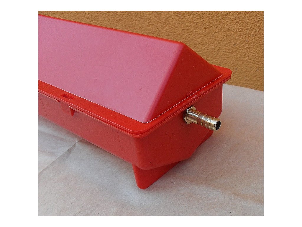 Plastová žlabová napáječka s plovákem, určená k napojení na spádovou vodu pomocí hadičky fi 9 mm. Díky promyšlené konstrukci poskytuje drůbeži vždy čistou vodu, která je chráněna před znečištěním větrem i prachem.