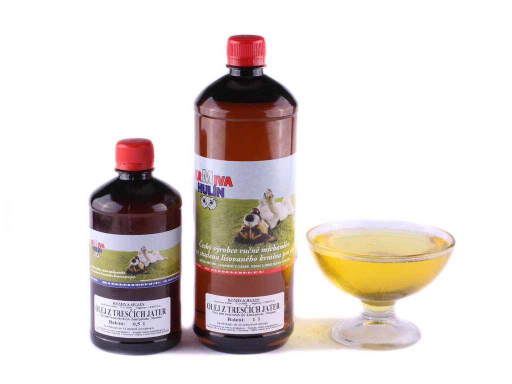 - Možnosti použití: Olej z tresčích jater je vynikající, nejen jako výživný a energetický doplněk stravy pro psy, ale také jako výborné a účinné ochucovadlo. Olej je ideální zamíchat do krmiva tvořící denní dávku. Obecně doporučené dávkování: 50 - 100 ml na kg hotového krmiva.