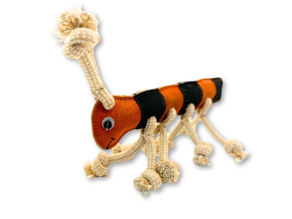 🐛 PafDog Stonožka Jarmila – hračka pro psy z kůže a juty (26 cm)