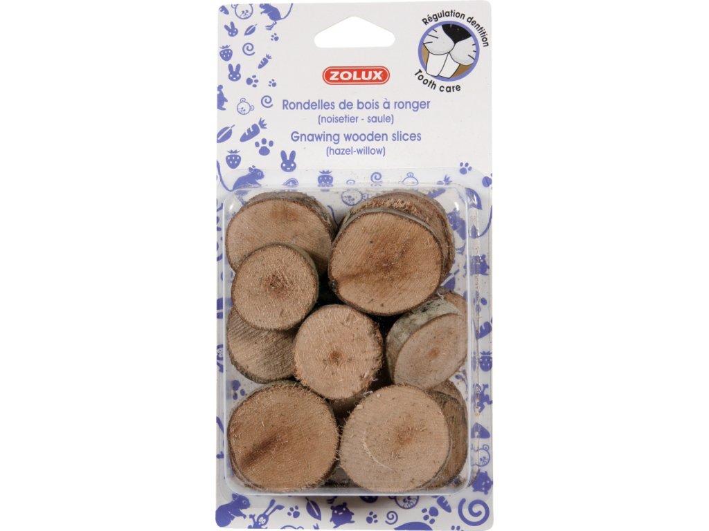 Dřevěné plátky Zolux jsou 100% přírodní pochoutkou a kousadlem pro hlodavce a králíky. Jsou vyrobeny z lísky a vrby, takže podporují přirozené obrušování zubů a zároveň poskytují zdravou a bezpečnou zábavu.