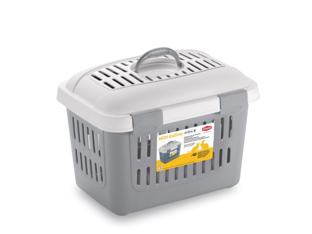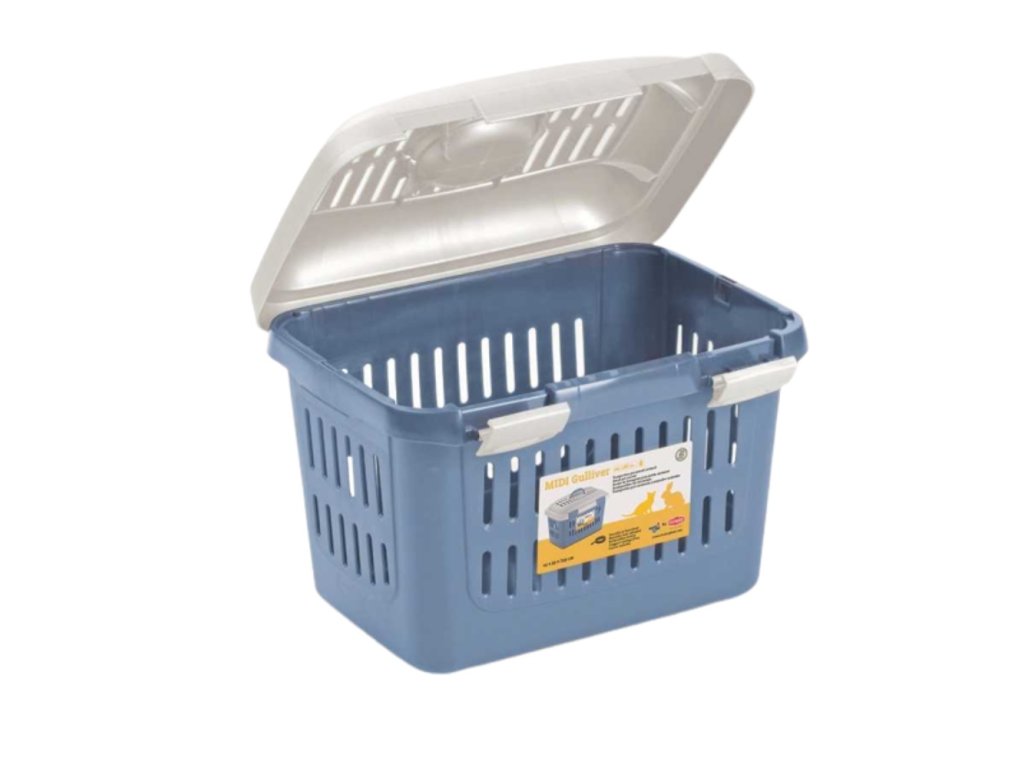 Midi Gulliver je praktická plastová přepravka určená pro bezpečnou přepravu větších hlodavců, menších koček a psů mini plemen. Díky kompaktním rozměrům, odolné konstrukci a snadnému zavírání je ideální pro cestování autem, vlakem, lodí i karavanem.