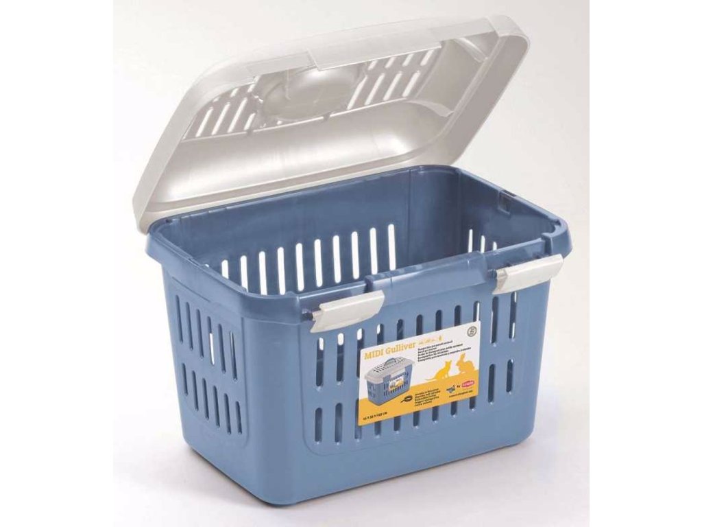 Midi Gulliver je praktická plastová přepravka určená pro bezpečnou přepravu větších hlodavců, menších koček a psů mini plemen. Díky pevnému plastu, klipsovému uzavírání a větracím otvorům je vhodná pro cestování autem, vlakem, lodí i karavanem.