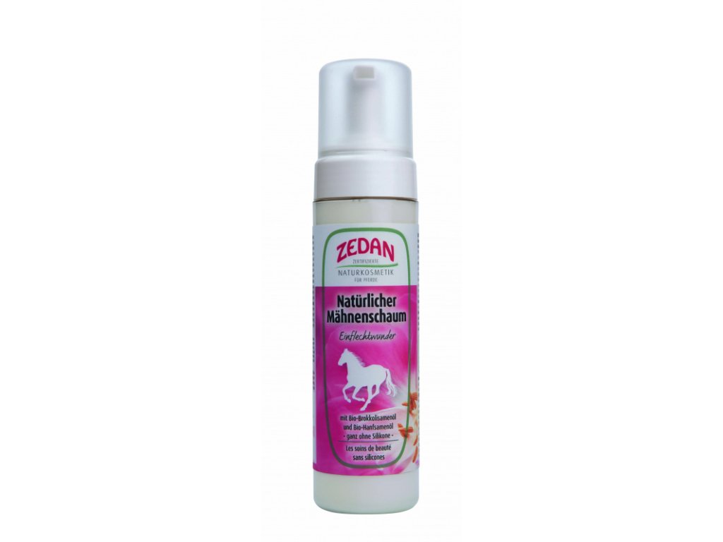 Maehnenschaum od ZEDAN je čistě přírodní pěna na hřívu a ocas, která výrazně usnadňuje zaplétání a úpravu žíní – a to i u koní, kteří jsou citliví na zvuk sprejů. Pěna se nanáší ručně nebo štětcem, jemně se zapracuje, krátce pročesá a hříva je ihned poddajná, upravená a připravená k zaplétání.