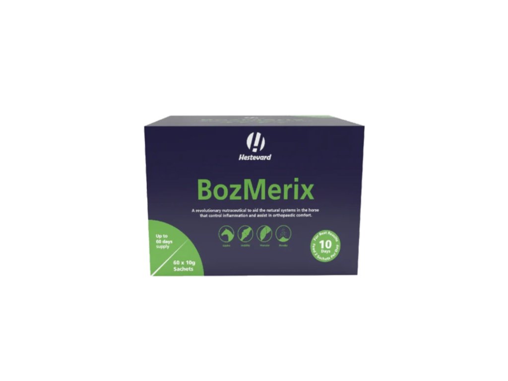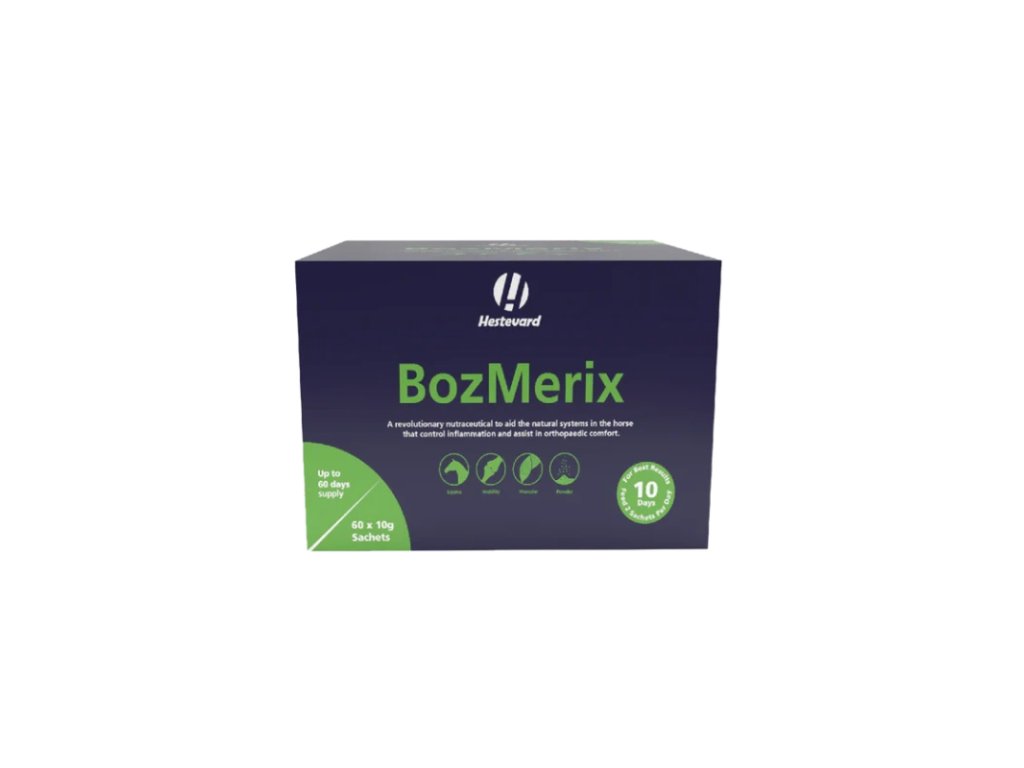 Veterinary Bozmerix je vysoce koncentrovaný krmný doplněk z veterinární řady Hestevard (Signature) Professional, určený k výživové podpoře přirozených protizánětlivých procesů v organismu koně. Je navržen pro koně v intenzivním tréninku, sportovní zátěži, rehabilitaci i pro starší koně se zvýšenými nároky na pohybový aparát.