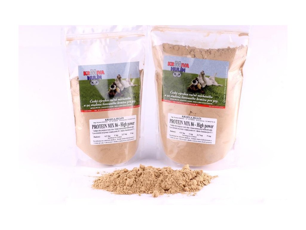 Díky vysokému obsahu bílkovin a snadné stravitelnosti je Protein Mix 86% High Power ideálním doplňkem pro psy, kteří potřebují zesílit, zlepšit fyzickou kondici nebo se zotavit po nemoci.