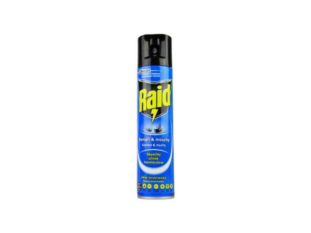Raid proti komárům a mouchám je insekticidní aerosolový přípravek na vodní bázi se svěží vůní k okamžitému hubení létajícího hmyzu, jako jsou komáři, mouchy, jejich vajíčka, ale i vosy a další. Poskytuje dlouhotrvající ochranu a účinkuje i jako preventivní odpuzující postřik.Doplňkové parametry