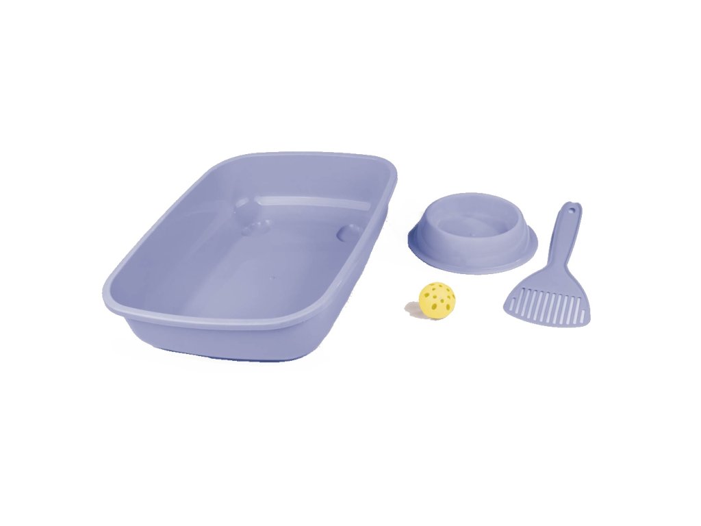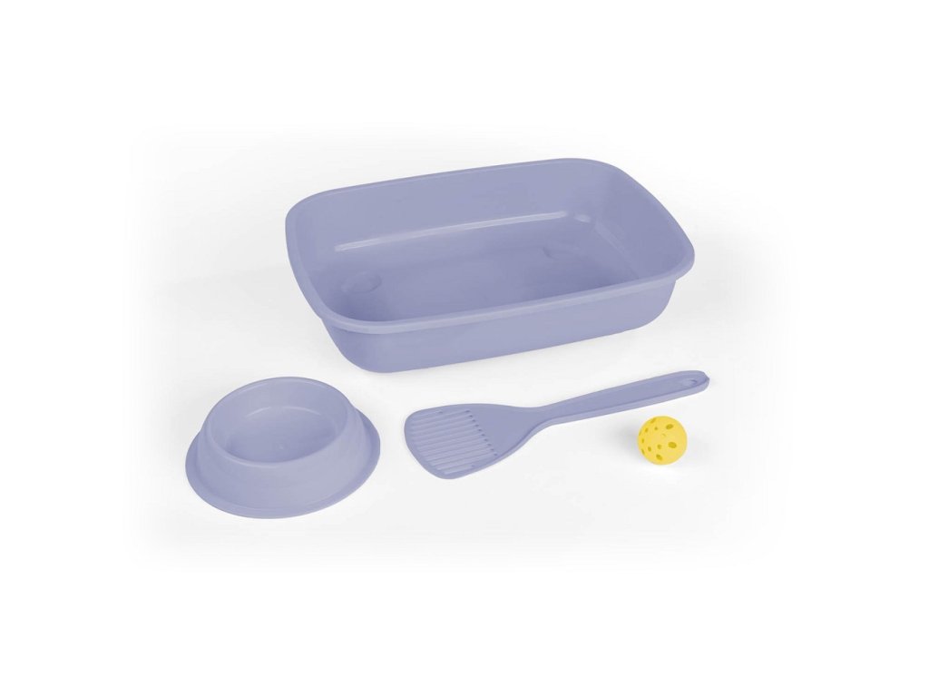 Součástí balení je toaleta, lopatka, plastová miska a hračka – míček, které ladí do elegantní šedomodré barvy. Všechny části jsou vyrobeny z kvalitního, odolného plastu, který se snadno čistí a zaručuje dlouhou životnost.