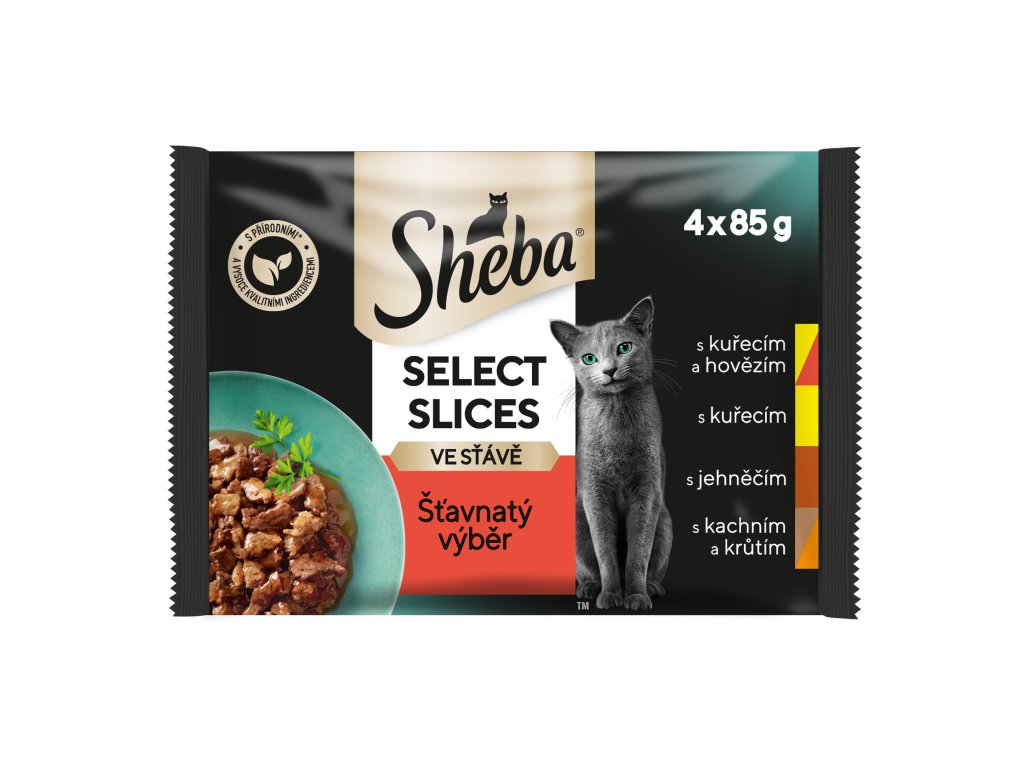🐾 Sheba Select Slices Šťavnatý výběr 4×85g – rozmanité chutě pro spokojenou kočku