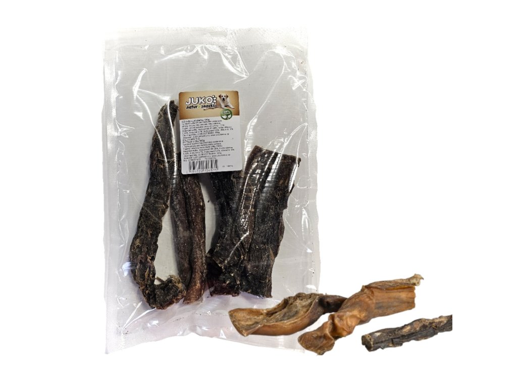 Pochoutka pro psy ve tvaru masových pásků. Obsahuje přírodní vitamíny a minerální látky.