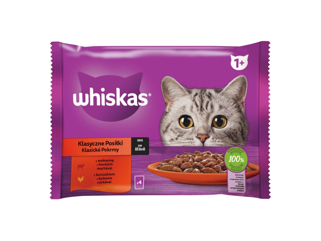 Značka Whiskas patří mezi nejznámější a nejoblíbenější krmiva pro kočky na světě. Nabízí širokou škálu produktů – granule, kapsičky, konzervy i pamlsky, které jsou přizpůsobené potřebám koček v různých životních fázích – od koťat přes dospělé až po seniory.
