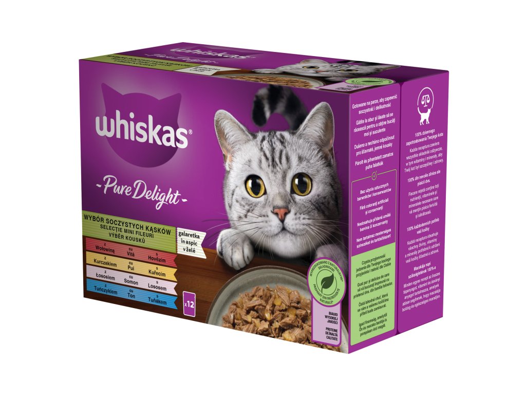 Whiskas Pure Delight mix v želé 12×85 g 🐟🐔🐄