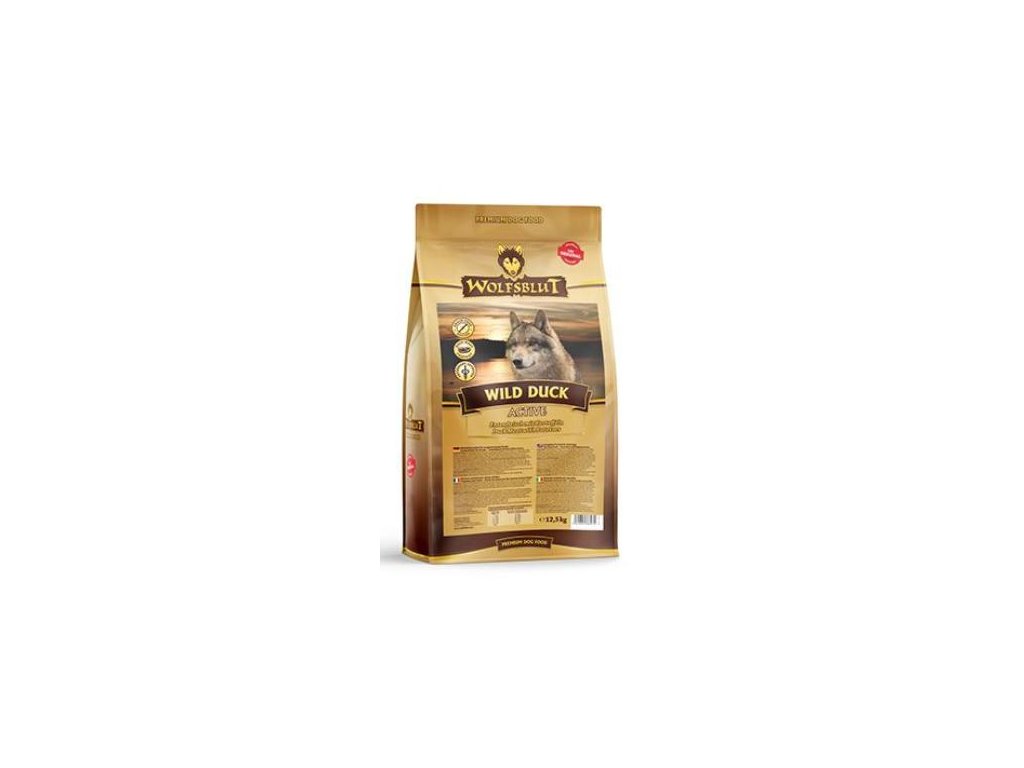 Vlci loví svou kořist od Skalistých hor Severní Ameriky, arktické tundry, hor a lesů Evropy až po pouště a stepi střední Asie. To jim dodává maso a vnitřnosti bohaté na živiny, ale také zeleninu, ovoce, bobule, kořeny a bylinky z obsahu žaludku kořisti. Obilí zde není zahrnuto. Vlk tak přijímá potřebné vitamíny, minerály, stopové prvky, enzymy a druhotné rostlinné látky. Vzhledem k tomu, že vlk je předkem všech psů, naše suché krmivo pro psy Wolfsblut je založeno na přirozených stravovacích návycích vlka. Obsahuje hodně masa nebo ryb v kombinaci se superpotravinami, které obsahují hodnotné ingredience – stejně jako v přírodě, bez obilovin. Náš výběr výjimečných druhů masa a superpotravin bohatých na živiny vychází z vlčích biotopů a jejich pestré stravy. Wolfsblut nabízí každému psovi druhově vhodnou a originální stravu a díky rozmanitosti odrůd si každý najde něco, co snese. Receptura suchého krmiva Active Wild Duck kombinuje výživu vlků s nejnovějšími vědeckými poznatky o správné výživě psů.