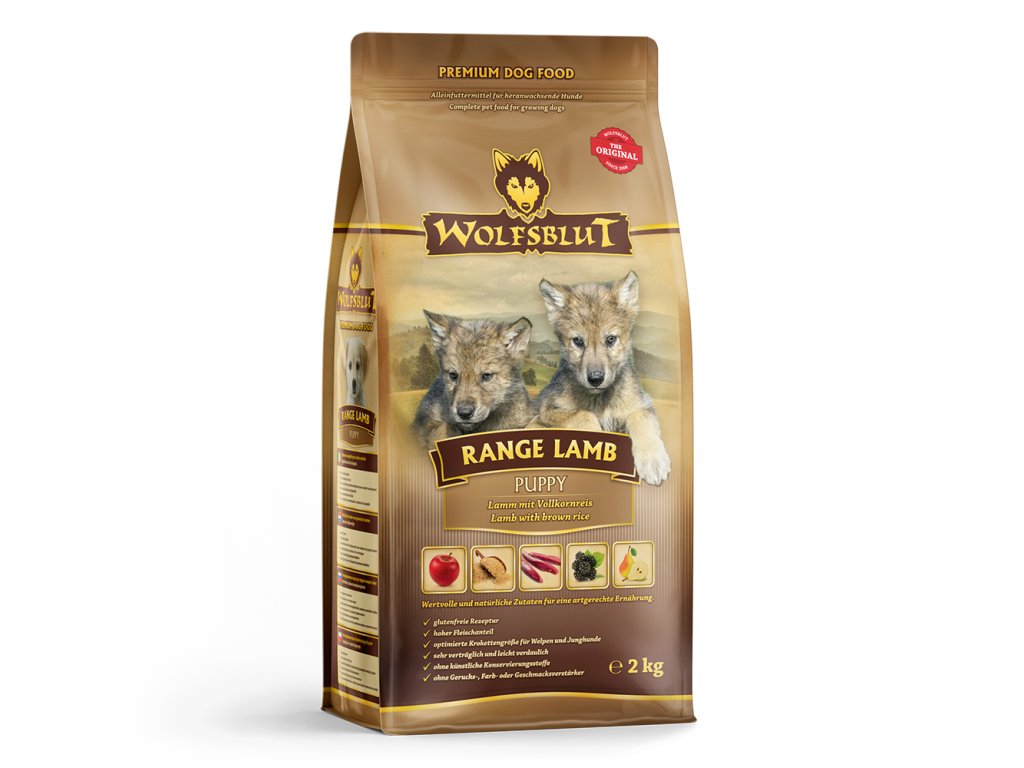 Vlci loví svou kořist od Skalistých hor Severní Ameriky, arktické tundry, hor a lesů Evropy až po pouště a stepi střední Asie. To jim dodává maso a vnitřnosti bohaté na živiny, ale také zeleninu, ovoce, bobule, kořeny a bylinky z obsahu žaludku kořisti. Obilí zde není zahrnuto. Vlk tak přijímá potřebné vitamíny, minerály, stopové prvky, enzymy a druhotné rostlinné látky. Vzhledem k tomu, že vlk je předkem všech psů, naše suché krmivo pro psy Wolfsblut je založeno na přirozených stravovacích návycích vlka. Obsahuje hodně masa nebo ryb v kombinaci se superpotravinami, které obsahují hodnotné ingredience – stejně jako v přírodě, bez obilovin. Náš výběr výjimečných druhů masa a superpotravin bohatých na živiny vychází z vlčích biotopů a jejich pestré stravy. Wolfsblut nabízí každému psovi druhově vhodnou a originální stravu a díky rozmanitosti odrůd si každý najde něco, co snese. Receptura suchého krmiva RANGE LAMB PUPPY kombinuje výživu vlků s nejnovějšími vědeckými poznatky o správné výživě psů.