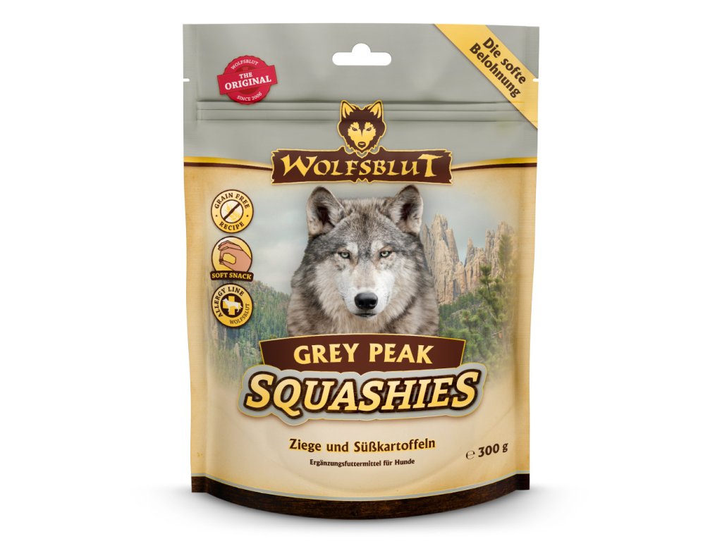 🐐 Wolfsblut Dog Squashies Grey Peak 300 g – měkké pamlsky s kozím masem a batáty