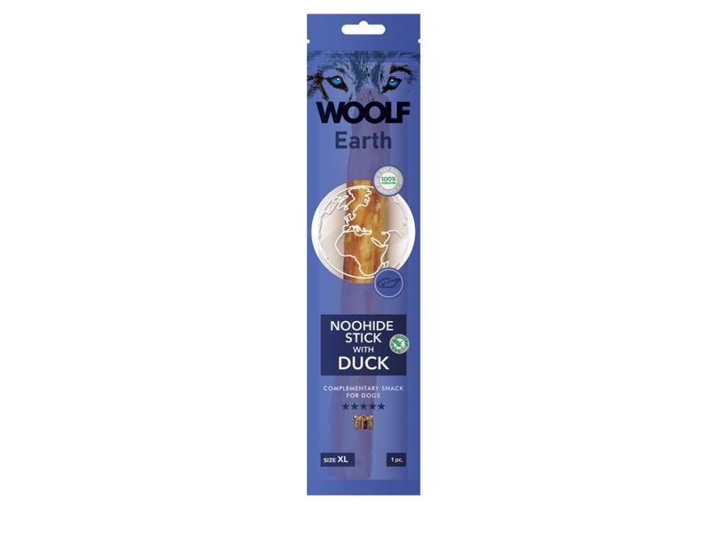 WOOLF Earth NOOHIDE XL je chutná přírodní tyčinka pro psy s kachním masem. Díky své velikosti je ideální pro střední a velká plemena. Skvělá volba pro dlouhé žvýkání, které zároveň podporuje péči o chrup.